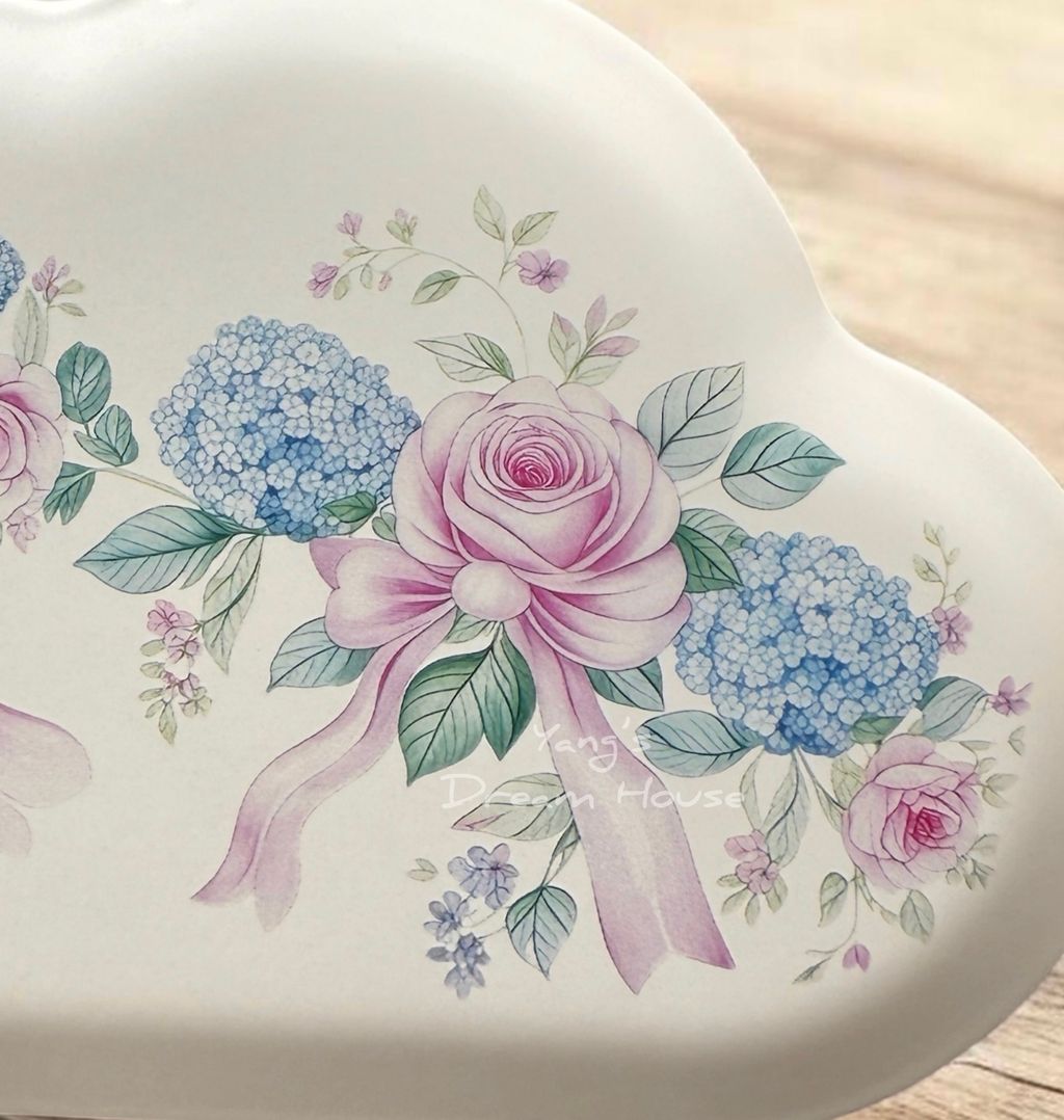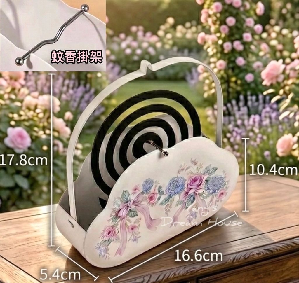 這款由小羊兒獨家設計的鐵藝蚊香盒,實品美得令人驚豔!外觀採用獨特的「雲朵波浪造型」,表面印有古典優雅的粉紫玫瑰、藍色繡球花與浪漫緞帶圖騰,光是擺在桌上就是一件極美的藝術品。
